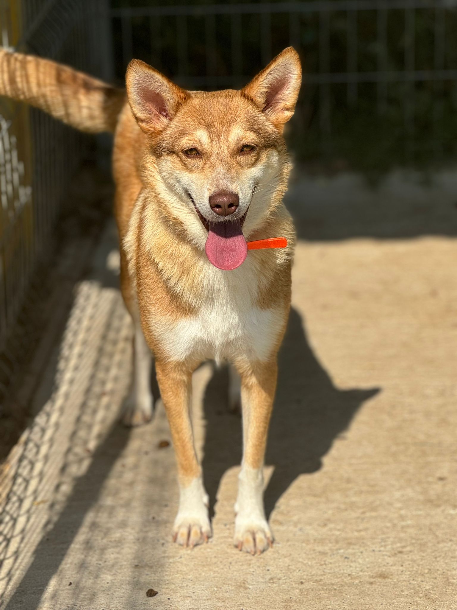 Melanie kam ins Tierheim, als wir gerade vor Ort waren bei unserem Aufenthalt im Mai. Von Anwohnern wurde gemeldet, dass Melanie bereits mehrere Menschen gebissen hatte, gefährlich war und dringend „weg“ muss. Das Team fuhr sofort los und konnte Melanie schnell sichern und was sollen wir sagen? Wir erwarteten alles, nur nicht eine solche nette, freundliche und aufgeschlossene Hündin. Ob die Berichte über Melanie stimmen wissen wir nicht, denn oft werden solche Gründe vorgeschoben, wenn Anwohner sich durch Straßenhunde gestört fühlen und sie möchten, dass die Hunde von dort verschwinden. Klar ist jedoch auch, dass Melanie nicht nur netten Menschen begegnet ist und sich unter Umständen auch nur berechtigter Weise verteidigt hatte. Zudem erzählte uns auch eine tierliebe Frau vor Ort, Melanie hätte vor kurzem Welpen gehabt. Diese kamen jedoch während eines Sturms durch Hochwasser ums Leben. Es ist also auch möglich, dass Melanie nur gebissen hat, um ihre Welpen zu beschützen. Wir werden nie erfahren, was genau in Melanies Vergangenheit alles vorgefallen ist, doch diese liegt nun hinter ihr und es wird Zeit in eine bessere Zukunft zu schauen.