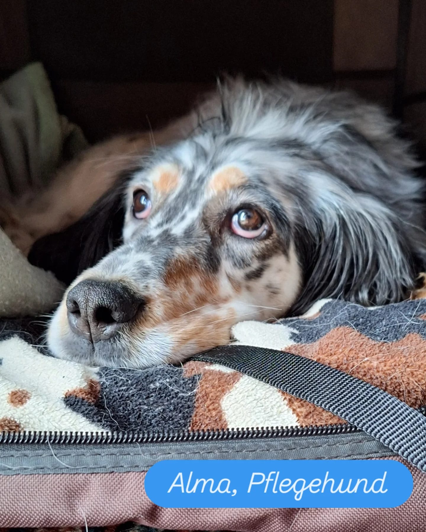 Für Alma wünschen wir uns ein ruhiges, Settererfahrenes Zuhause, in dem sie die Zeit bekommt, die sie braucht. Wer nun mit Alma zusammen daran arbeiten möchte aus ihr einen fröhlichen Jagdhund zu machen, darf sie gerne auf der Pflegestelle kennenlernen.