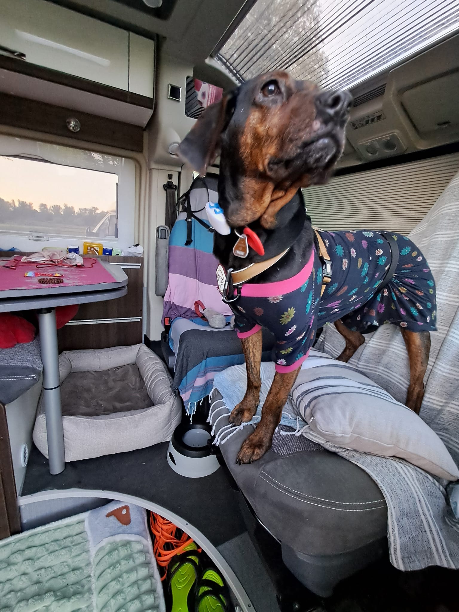 Raya ist von Anfang an stubenrein, zeigt allerdings nicht aktiv an, wann sie raus muss. Alleinbleiben klappt bereits bis zu einer Stunde problemlos – einzige Ausnahme: Die Couch wird dann gern zum Nickerchen genutzt, obwohl sie tabu ist. Autofahren? Kein Problem! Im Auto ist Raya entspannt, sie schläft meist während der Fahrt und fährt gerne mit.