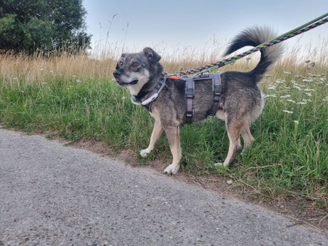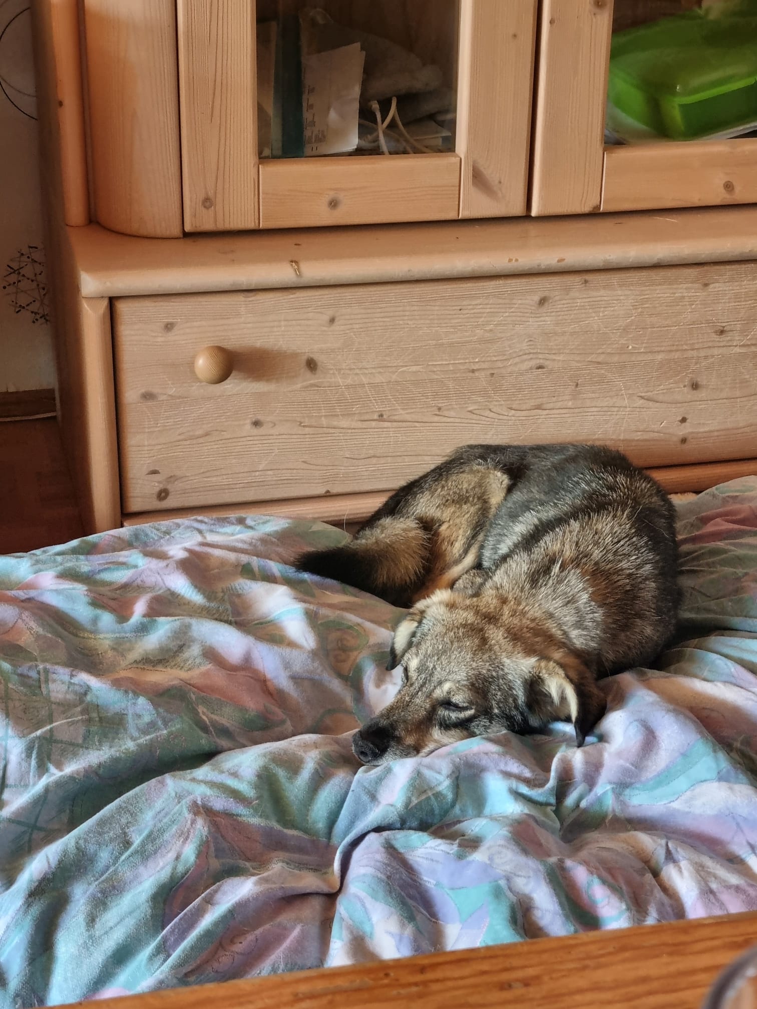 Im Juli 2025 bekam Turbo dann endlich seine Chance und durfte auf eine Pflegestelle nach Deutschland ziehen. Wie es nach all den Jahren Zwingerleben nicht verwunderlich ist, benötigte er zu Beginn und auch weiterhin vor allem eines - Zeit! Turbo hat nichts Schlechtes erlebt, sondern schlichtweg Nichts und dies von Geburt an. Das Fehlen von entscheidenden prägenden Lernerfahrungen und Umwelteinflüssen kann einen Hund lebenslang beeinflussen. Doch Turbo entwickelt sich sehr gut auf seiner Pflegestelle und konnte bisher, in seinem Tempo, schon viel lernen. Er hat zu seinen Bezugspersonen bereits eine gute Bindung aufgebaut und genießt Nähe und Streicheleinheiten sehr. Er ist stubenrein, bleibt alleine, akzeptiert Leine und Geschirr gut, reizarme Spaziergänge genießt er bereits sehr und auch das Auto fahren klappt kontinuierlich besser. In seinem Grundcharakter ist Turbo ein durchweg freundlicher, fröhlicher und sanfter Kerl. Dies zeigt sich vor allem in seinem sehr guten Sozialverhalten gegenüber Artgenossen und auch mit Katzen versteht er sich problemlos. Für ihn ist das Rudel ein wichtiger Anker. In Momenten der Unsicherheit sucht er stets Kontakt und Anlehnung bei ihm vertrauten Menschen, aber vor allem bei seinen Artgenossen. Aus diesem Grund benötigt Turbo auch in seiner neuen Familie einen souveränen Ersthund, der ihm Ruhe und Sicherheit geben kann. Zwar möchte Turbo in kurzen Einheiten auch mal spielen, allerdings sollten seine neuen Rudelmitglieder keine wilden Draufgänger sein, die ständig auf Spiel und Action aus sind. Kinder sehen wird aufgrund von Turbos Unsicherheiten nicht in seiner neuen Familie. Sein neues Zuhause sollte zudem ruhig und ländlich gelegen sein, sowie den Zugang zu einem sicher umzäunten Garten haben. Turbo kommt stetig mehr aus sich heraus und macht immer wieder Fortschritte. Aber es ist eben nicht leicht 7 Jahre Tierheimalltag, von jetzt auf gleich gegen den ereignisreichen Alltag eines Haushundes zu tauschen. Für unsere Hunde völlig normale Dinge bedeuten für Turbo schon großen Stress und mitunter maximale Reizüberflutung. Wie etwa jegliche Begegnungen bei Spaziergängen, vorbeifahrende Autos, Jogger, Kinder oder Fahrräder sind für Turbo nach wie vor beängstigend. Turbo benötigt also Menschen mit Hundeerfahrung, die ihm Ruhe und Sicherheit geben, ihm viel Geduld entgegen bringen und vor allem nicht zu schnell mit zu hohen Erwartungen überfordern. Das was Turbo bisher schon an Entwicklung durchgemacht hat , ist in Hinblick auf seine Vergangenheit enorm. Er ist erst ganz am Anfang und es schlummert noch so viel Potential in ihm. Allerdings sollten seine neuen Menschen sich dennoch bewusst sein, dass Turbo noch einen langen Weg vor sich hat und es auch immer wieder Rückschritte geben wird. Unter Umständen wird Turbo nie ein Hund werden, der seine Menschen entspannt überallhin begleitet und alles Neue wird vermutlich immer erstmal Angst und Stress bedeuten. Dies klingt vielleicht ziemlich pessimistisch, doch ist es in den meisten Fällen die Realität im Zusammenleben mit solchen Hunden, welcher man sich einfach bewusst sein muss.
