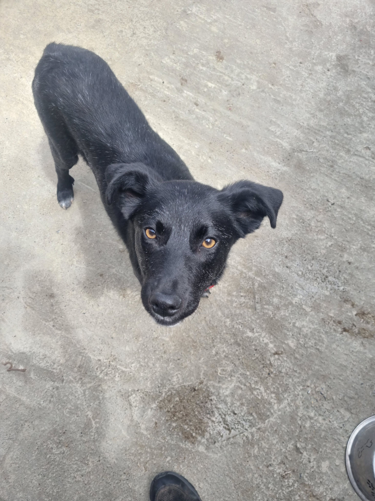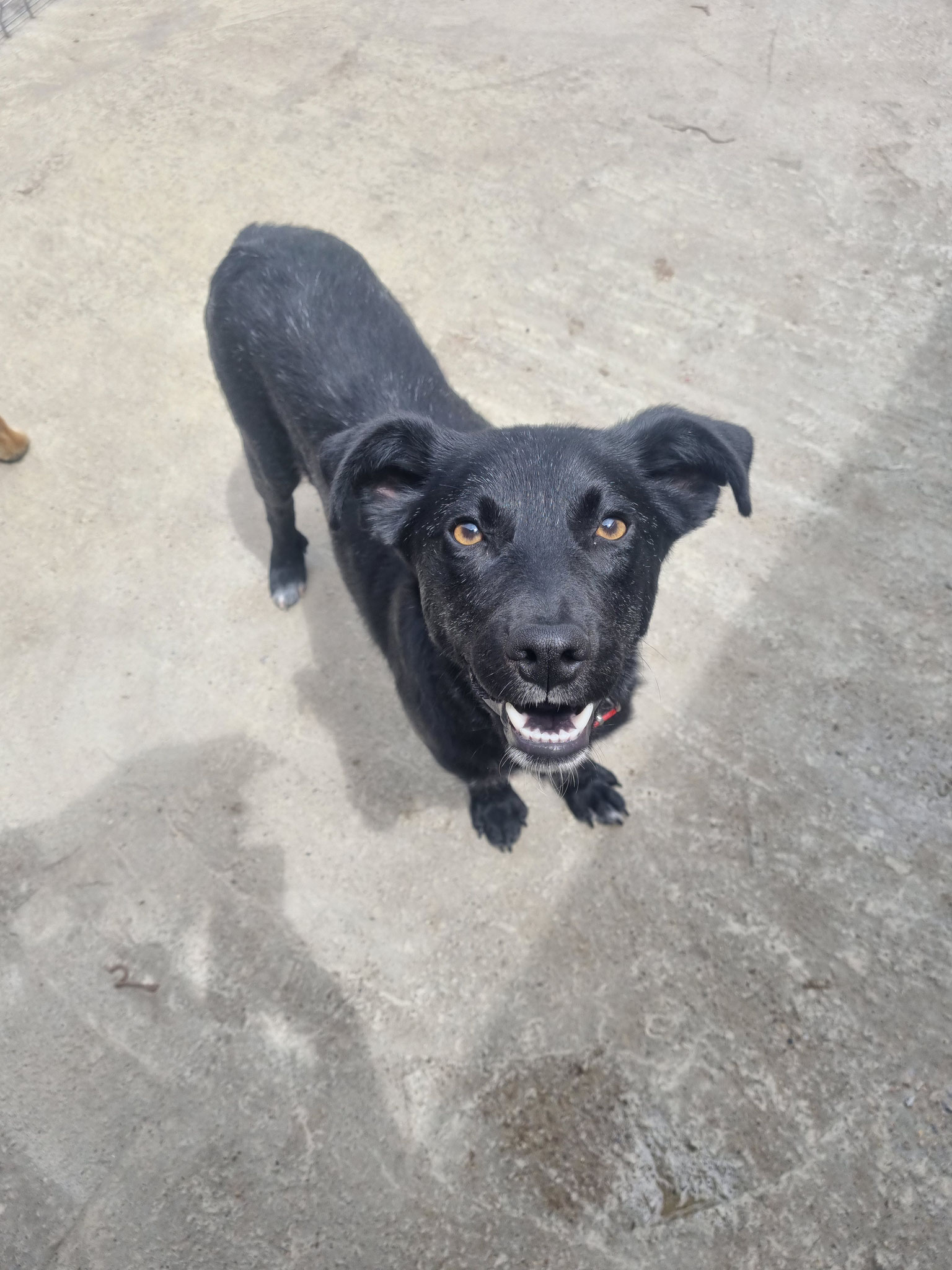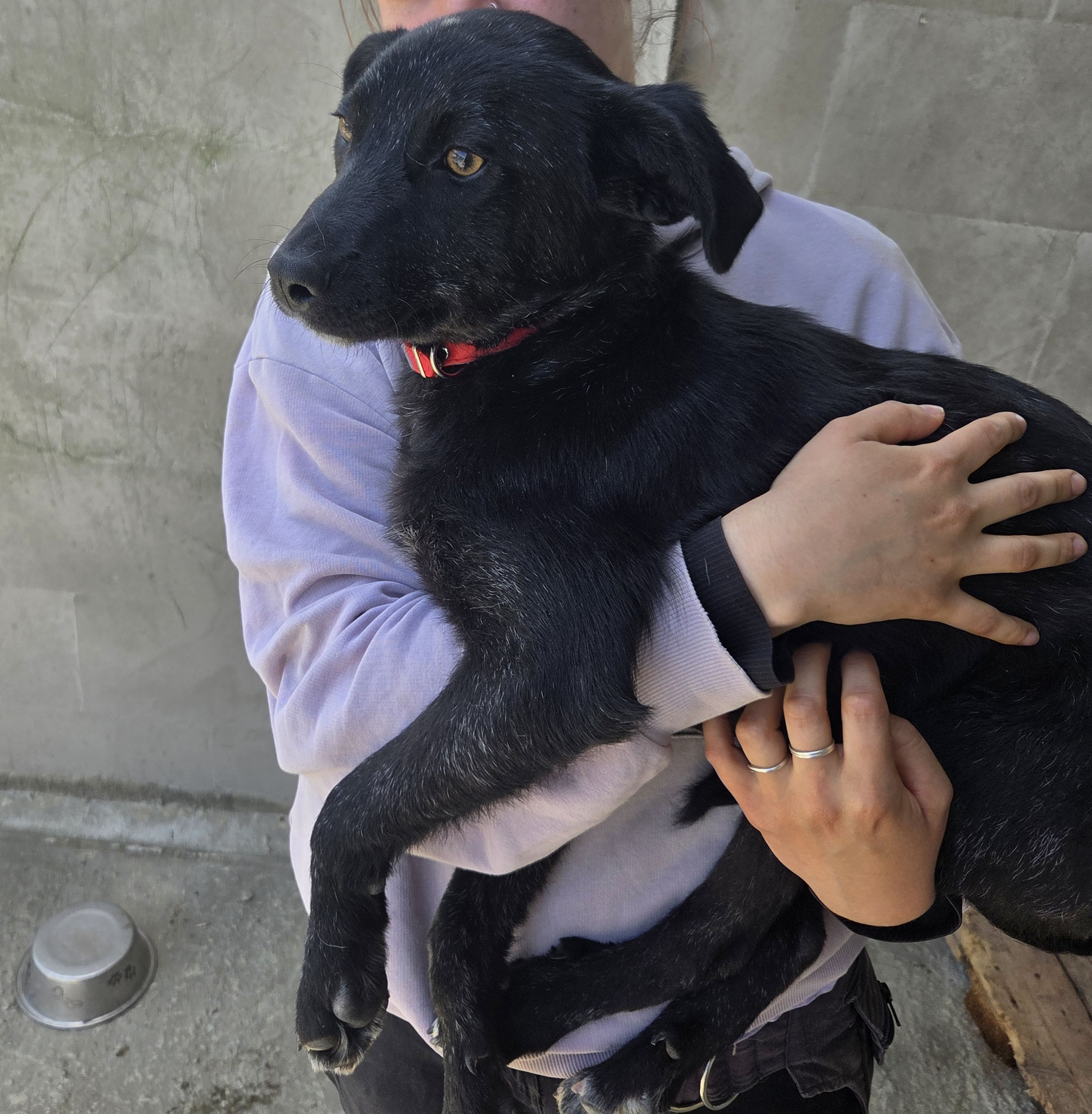 Größe: noch im Wachstum; ausgewachsen vermutlich mittelgroß, aktuell 11kg 43cm Schulterhöhe (Juni 2025)