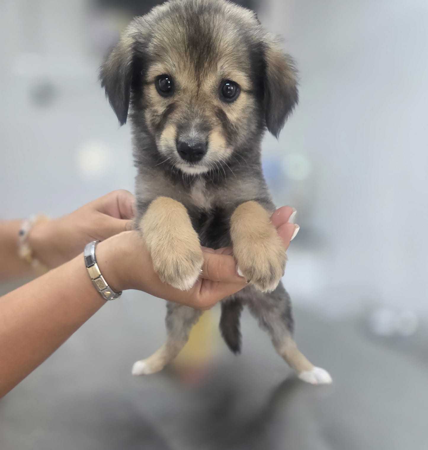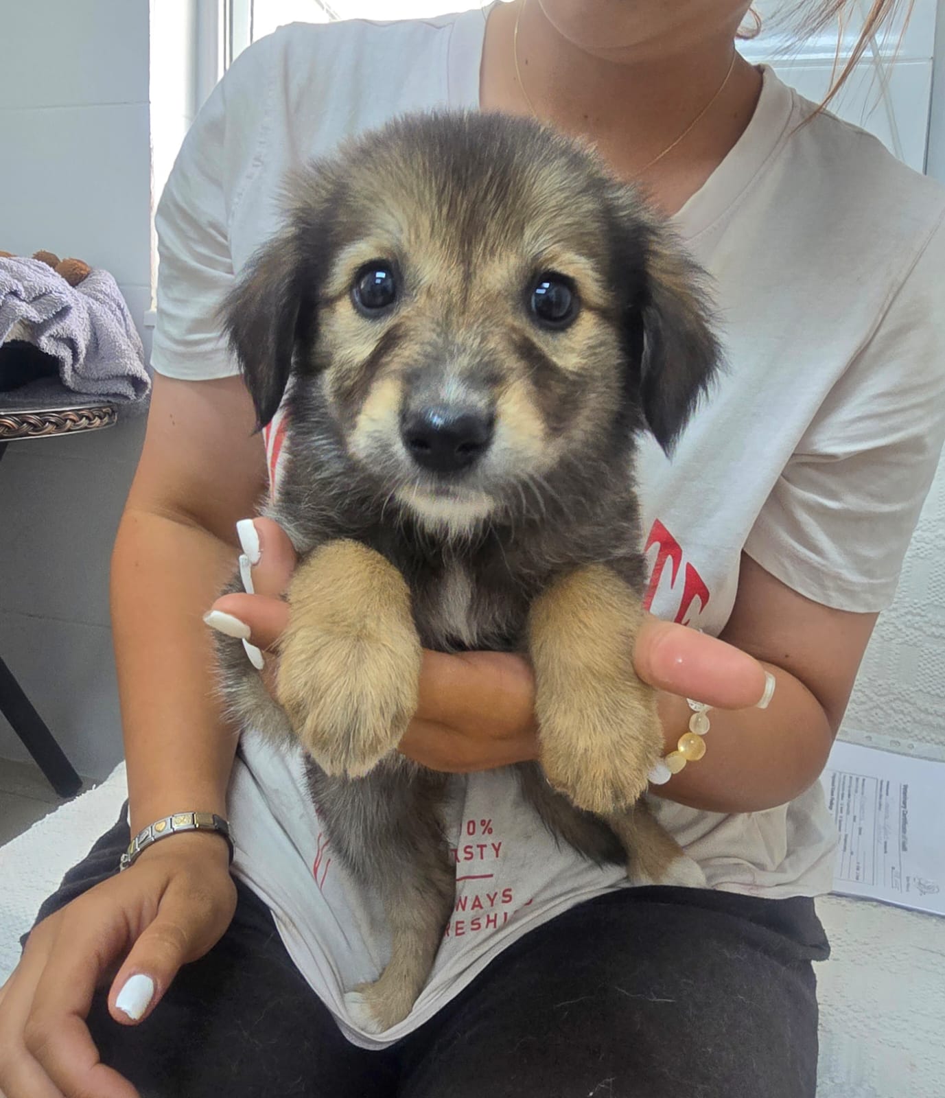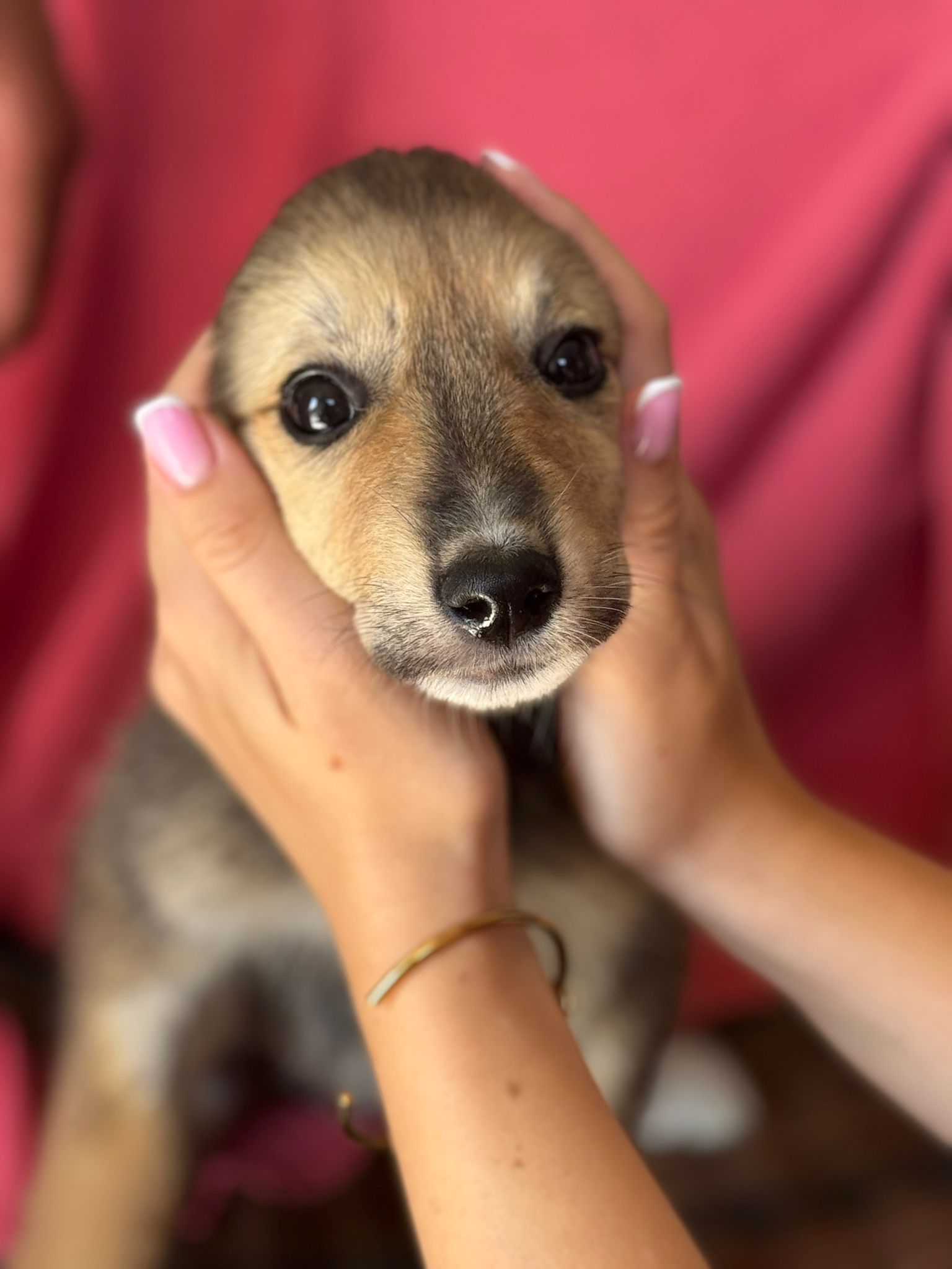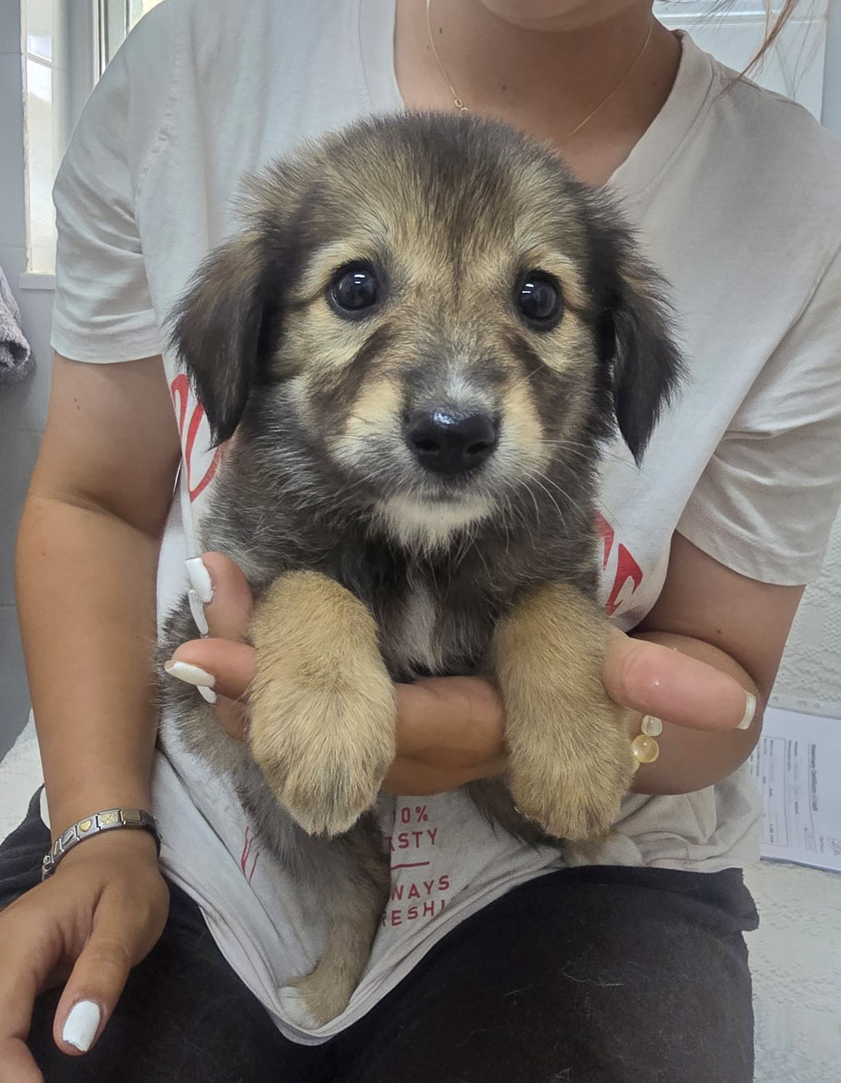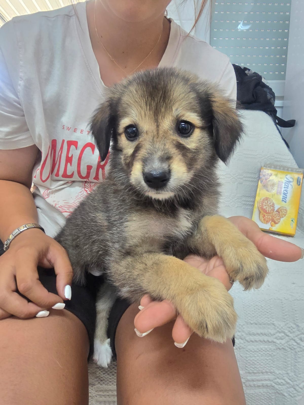 Ein Tierheim bedeutet zwar Sicherheit und beständige Versorgung, allerdings ist die reizarme Umgebung kein guter Ort zum Aufwachsen für Hundekinder. Es fehlt den Pflegern einfach an Zeit, um den Lernbedürfnissen der Kleinen gerecht werden zu können. Daher sollen die Geschwister so schnell wie möglich in ein eigenes Zuhause umziehen, wo sie endlich alles Wichtige lernen und erfahren können. Gwyn zeigt sich im Tierheim als welpentypisch verspielt, offen und freundlich gegenüber Menschen. Die Aufmerksamkeit des Menschen ist das Größte für sie und die Freude groß, wenn sich jemand dem Zwinger nähert. Die Vergesellschaftung mit anderen Tieren wie etwa Katzen ist in diesem Alter meist unproblematisch, sofern sie behutsam durchgeführt wird. Auch weitere Hundekumpel dürfen gerne in der Familie vorhanden sein. Jedoch gilt auch hier, die Zusammenführung sollte behutsam und für alle Vierbeiner ruhig und sicher ablaufen. Einen Hundewelpen groß zu ziehen ist eine wundervolle Aufgabe, geht jedoch auch mit einer großen Portion Verantwortung einher. Es gilt sich dieser Verantwortung bewusst zu sein und zu wissen, dass Pipipfützen, angekaute Schuhe und schlaflose Nächte zum Abenteuer Welpe dazugehören können. Wer also Lust hat Gwyn auf diesem spannenden Weg in die große weite Welt zu begleiten, darf sich gerne bei uns melden.