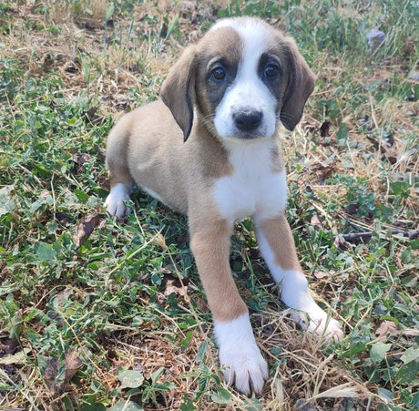 Luna ist die Feinsinnige unter den Welpen. Sie beobachtet viel, reagiert sensibel auf Stimmungen und sucht meist still die Nähe zu vertrauten Menschen. In ihrer Gegenwart wird alles ein bisschen ruhiger, sanfter, echter. Zusammen mit ihren acht Geschwistern Fleur, Fluffy, Fred, Harry, Lucius, Tonks, Ron und Dobby wurde Luna bei unserer Tierschützerin geboren, nachdem ihre Mutter Hedwig trächtig von der Straße gerettet wurde. Luna sucht ein liebevolles Zuhause, das sie mit Geduld, Verständnis und einer klaren Führung durch die anstrengende Welpen- und später Pubertätsphase begleitet, denn Pipipfützen, zerkaute Gegenstände und die ein oder andere schlaflose Nacht sind hier vorprogrammiert. Kinder dürfen gerne Teil ihres neuen Zuhauses sein, wenn sie liebevoll mit einem jungen Hund umgehen und vor allem Ruhezeiten und -zonen unter Aufsicht der Eltern respektieren. Luna ist freundlich, sozial und verträglich mit Hunden, eventuell auch mit Katzen. Da Luna – wie alle ihre Geschwister – die komplette Grunderziehung erst noch gemeinsam mit ihrer Familie lernen muss, empfehlen wir den Besuch einer guten Hundeschule, um von Anfang an Sicherheit und Struktur in die Entwicklung zu bringen. Sie wünscht sich Menschen, die nicht nur Freude an niedlichen Momenten haben, sondern auch bereit sind, Grenzen zu setzen, Routinen zu schaffen und sie zu fördern. Wer Luna aufnimmt, bekommt eine treue Begleiterin fürs Leben – loyal und voller Wärme.